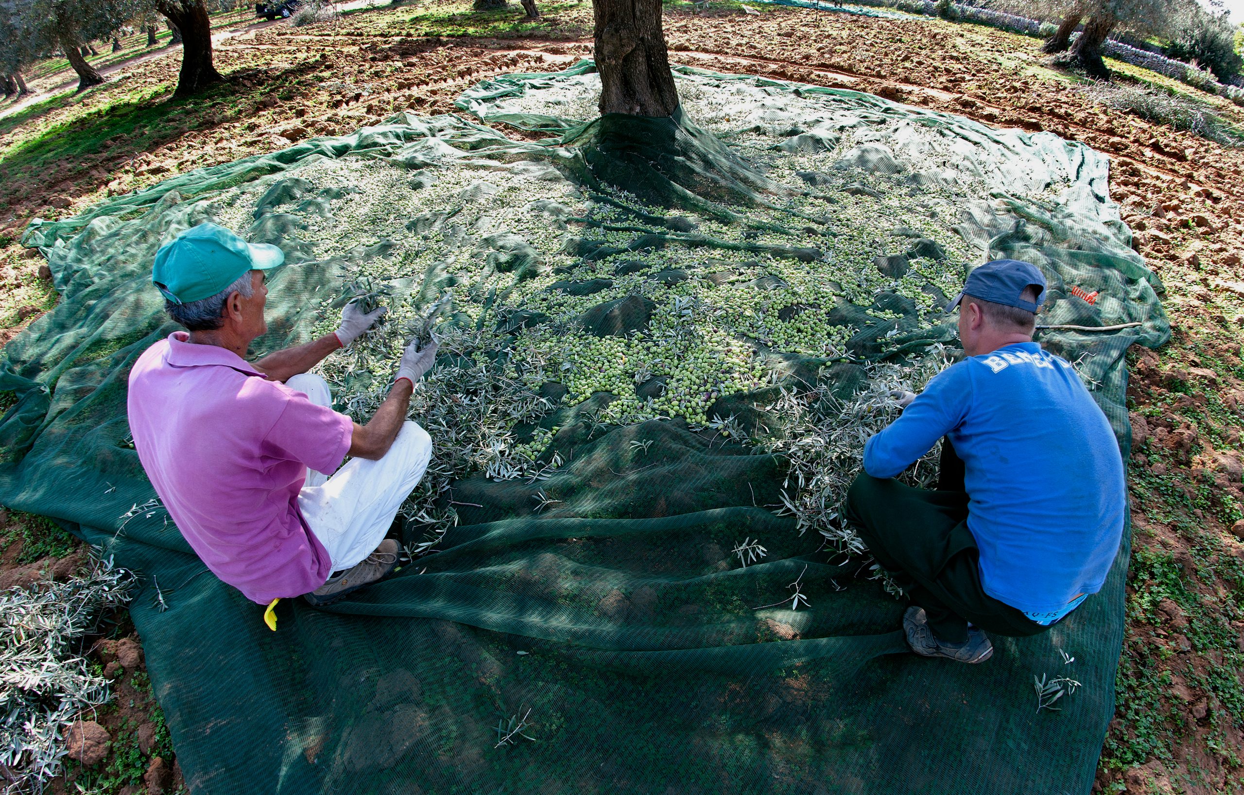 Odlingsåret börjar på vintern i januari då träden beskärs, kraftigt, och regnet ger vatten till rotsystemet. Under vintern täcks marken under träden av en vacker ljusgul klöver som binder kväve ur luften och för ner den i jorden. Klövern betas sedan av får och getter som släpps in i olivlunden och vaktas av sin herde. Fåren bidrar genom att gödsla marken där de går fram.